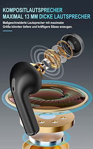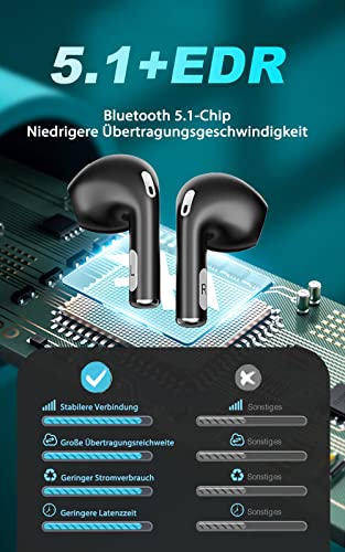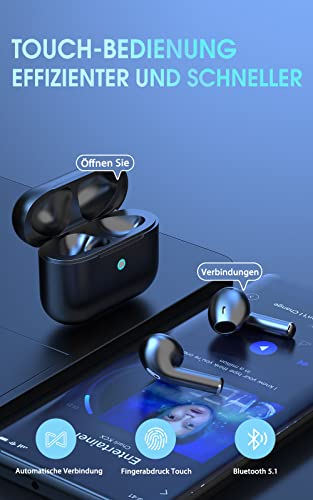 【Bluetooth 5.1 Kopfhörer】 Kabellose Kopfhörer mit Bluetooth 5.1-Chip, öffnen Sie einfach die Abdeckung des Kopfhörerfachs, und sie werden automatisch mit Ihrem Telefon verbunden (nach dem ersten Pairing).Schnellere Verbindungsgeschwindigkeit, klarere Musik und flüssigeres Anruferlebnis.