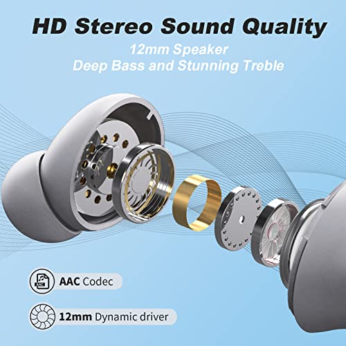 HD Anrufe und High Fidelity Audio: Kabellose kopfhörer verfügt über einen 12-mm-Graphen-Akustikeinheit mit 4 Mikrofone, die dafür sorgen deep bass und stereo sound für außergewöhnlichen HiFi Sound mit geringer Latenzzeit. So erhalten Sie eine hohe klang qualität und klare Anrufe.
