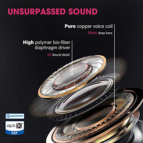 Unvergleichliche Klangqualität: Unsere Bluetooth-Kopfhörer liefern einen unvergleichlichen Stereo-Surround-Sound, dank einer innovativen 10-mm-Hochpolymer-Biofaser-Membran-Treibereinheit und einer reinen Kupfer-Schwingspule, die eine erstaunliche Klangvibranzen und eine hohe Wiederherstellung von Klangdetails für eine angenehmere Musiksession gewährleistet. (Unterstützt APTX, kompatibel mit SBC, AAC usw.)