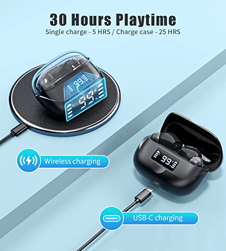 【Bluetooth Kopfhörer mit 30 St. Akkulaufzeit】Der kabellos Kopfhörer kann 5 Stunden(Einmal Aufladen) mit einem einzigen Kopfhörer benutzt werden und mit dem Ladeetui mehr als 30 Stunden, man kann Musik jederzeit und überall nach einer vollen Ladung genießen.