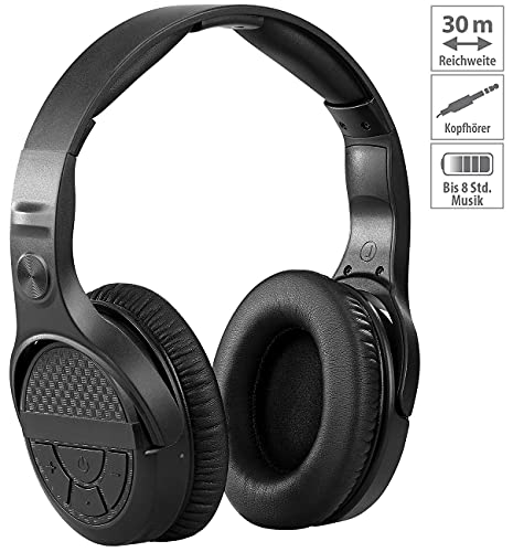 Ideal zum Fernsehen zu zweit per Kopfhörer • Bis zu 30 Meter Funk-Reichweite • Bis zu 8 Stunden Akku-Laufzeit • Steuerung direkt am Kopfhörer • Hoher Tragekomfort dank gepolsterter Ohrmuscheln
