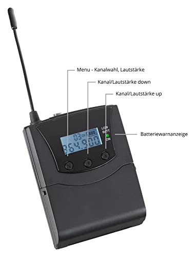 Umkreis von ca. 75 m. Die UHF-Technik sorgt dabei für eine klare, rauschfreie Übertragung. Welcher der bis zu 3 möglichen