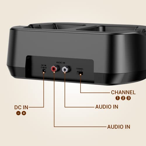 Einfaches Aufladen und lange Spielzeit: Der Akku des Kopfhörers kann bei voller Ladung bis zu 35 Stunden laufen. Das Aufladen ist einfach, indem Sie sie auf die Ladestation stellen. Wenn der Akku schwach ist, dient die Senderbasis auch als Ladestation. Legen Sie das Headset einfach auf die Dockingstation und es beginnt mit dem Ladevorgang.