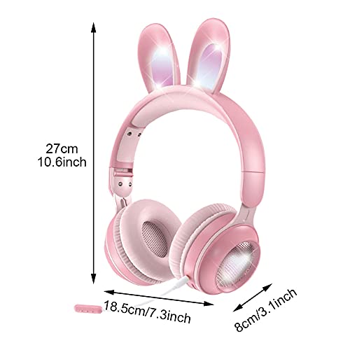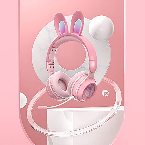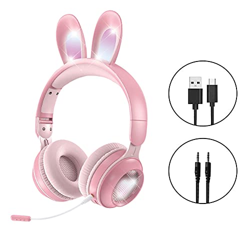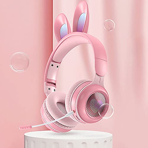 Specification: Matedepreso Kabelloses Gaming-Headset, UKW-Radio mit Mikrofon, Kaninchenohr-Design, mit LED-Licht, für Zuhause, Geschenk…