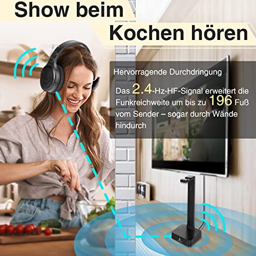 🎧📺【Ohrhörer mit Hoher Reichweite】: Unsere kabellose kopfhörer für fernseher verwenden die drahtlose 2,4-GHz-HF-Technologie,sie müssen nicht den komplexen Bluetooth. Es hat wenig statische Geräusche und wenige Interferenzen,gewährleistet eine perfekte Audio- und Bildsynchronisierung ohne Verzögerung mit einer drahtlosen Reichweite von bis zu 197 Fuß.