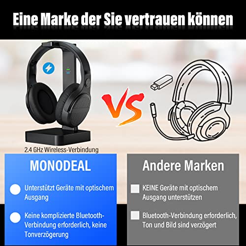 MonoDeal Kabellose Kopfhörer für Fernseher, TV Kopfhörer Kabellos Over Ear, Kabellose Kopfhörer mit 2.4GHz Digitalsender…