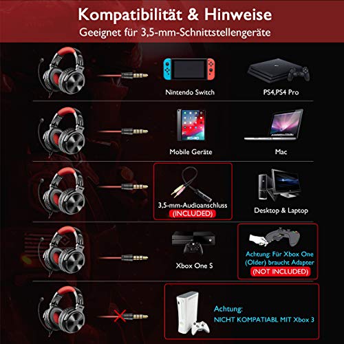 PC Headset mit Kabel & Y Aux Kabel:Das Pro M Gaming Headset kommt mit einem abnehmbaren 2Meter langes 3.5mm-Audiokabel und Y Splitter Kabel. Auf dem Kabel gibt es Boom Mikrofon, Lautstärkeregler und Mic Controller.