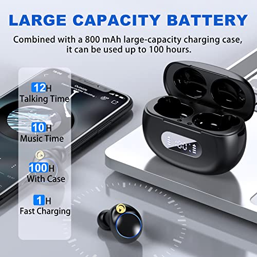 【100 Stunden Akkulaufzeit & Ladeetui mit großer Kapazität】Die in ear kopfhörer bluetooth bieten etwa 10 Stunden Spielzeit mit einer einzigen Ladung, und es dauert nur 1 Stunde, um vollständig aufzuladen. Es kann auch 8-9 Ladezeiten für Ohrstöpsel bieten, wenn Sie 800mAh Ladeetui verwenden, kann die Spielzeit der earbuds etwa 100 Stunden erreichen. Machen Sie sich keine Sorgen, dass Ihnen der Akku ausgeht, wenn Sie ausgehen.