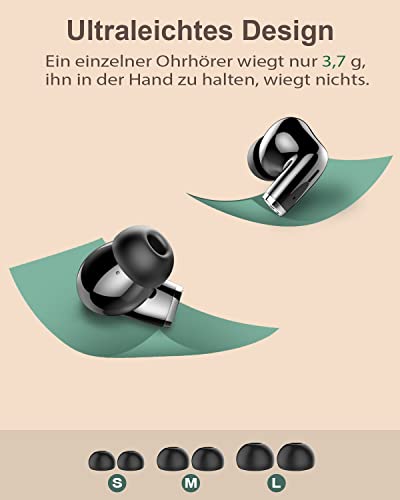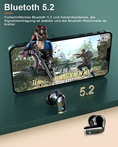 Bluetooth 5.2 Chip: Jeder Bluetooth kopfhörer in ear wird vom Labor für HF-Bluetooth-Signaltests getestet und wird nicht getrennt, um eine stabile Übertragung in jeder Umgebung aufrechtzuerhalten(Die Übertragungsreichweite beträgt bis zu 15m).