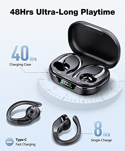 48H Spielzeit: Kabellose kopfhörer halten bis zu 8 Stunden mit einer einzigen vollen Ladung. 48 Stunden Spielzeit mit Ladebox. Sport Kopfhörer Bluetooth die das Aufladen über USB-C-Kabel unterstützen. Das Ladecase ist in weniger als 2 Stunden vollständig aufgeladen.