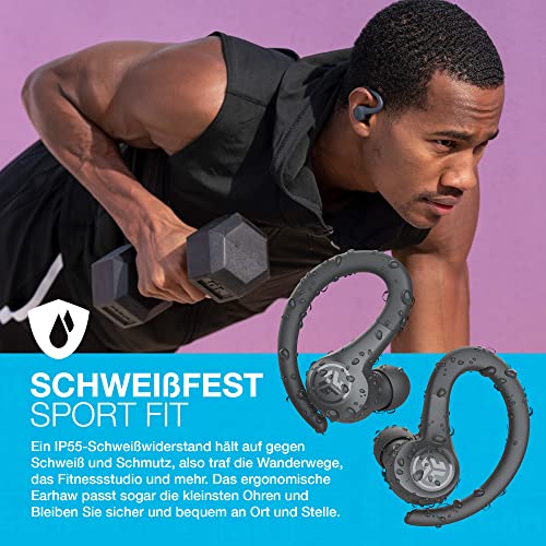 SICHERER SITZ: Die ergonomischen Ohrbügel für kabellose Sportkopfhörer passen selbst auf die kleinsten Ohren, bleiben sicher und bequem an ihrem Platz und sind daher auch als Marathon Kopfhörer und Fitness Kopfhörer Bluetooth geeignet. Verschiedene Größen enthalten
