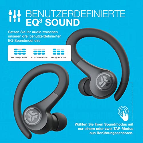3 EQ-SOUND-EINSTELLUNGEN: Verwenden Sie die Touch-Control-Funktionen der Sportkopfhörer, um Ihre Klangpräferenz zu wählen – wählen Sie zwischen den Modi JLab Signature, Balanced und Bass Boost, die Sie auch ohne App verwenden können – hören Sie den Unterschied