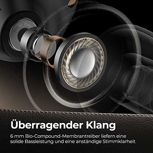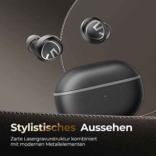 【Innovatives Design und bequeme Passform】 Die lasergravierte Lederstruktur in Kombination mit Metallelementen erzielt ein Gleichgewicht zwischen Exquisit und Komfort. Das ergonomische Design mit einem Gewicht von nur 0,14 Unzen pro Ohrhörer bietet ein perfektes Trageerlebnis mit ganztägigem Komfort.