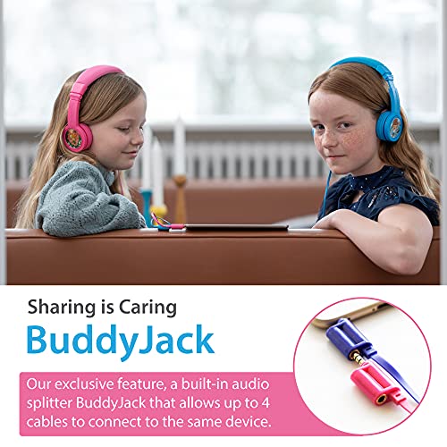 SPASS FÜR KINDER: Wir machen sicheren Audio-Spaß für Kinder. Helle bunte Designs. Individuell gestaltete Sticker-Illustrationen weltberühmter Künstler. Kinder können mit dem BuddyCable-System mit Freunden zuhören. Dank einer stapelbaren Audiobuchse können bis zu 4 Kopfhörer an 1 Gerät angeschlossen werden.
