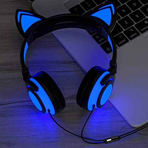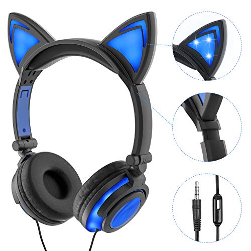 Kinder Kopfhörer mit LED-Lichtern – diese Katzen-Kopfhörer sind mit niedlichen Katzenohren entworfen, was sie niedlich und von Kindern und Jugendlichen begrüßt macht.