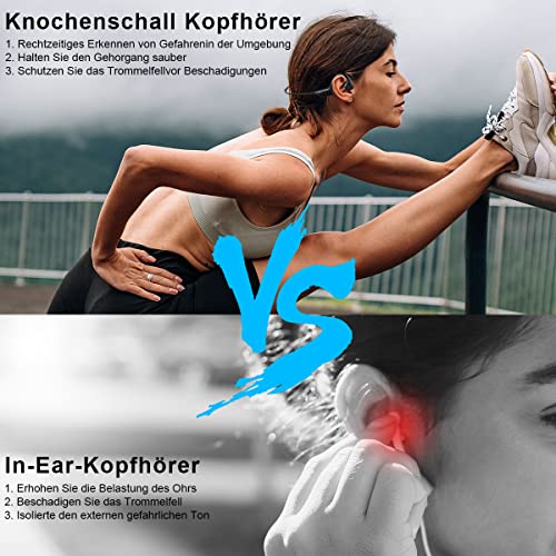 ♫ 【OPEN-EAR Ohrleitungstechnologie】 Knochenleitungskopfhörer durch die Vibration des Schalls durch die Knochen zu Ihrem Innenohr. Das offene Design der Knochenleitungskopfhörer ermöglicht es Ihnen, die Umgebung beim Musikhören zu spüren. Geeignet für Läufer und Radfahrer Genießen Sie Musik, während Sie Gefahren vermeiden.