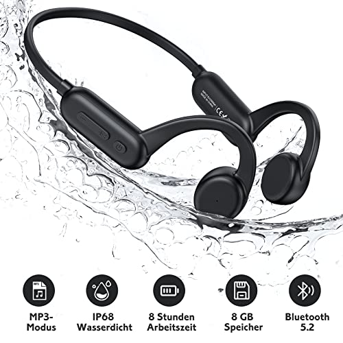 Specification: wasserdichte Knochenschall Kopfhörer, Sport Kopfhörer mit 8G Speicher, MP3 Modus, Mikrofon, kabellos Bluetooth 5.2 Open…
