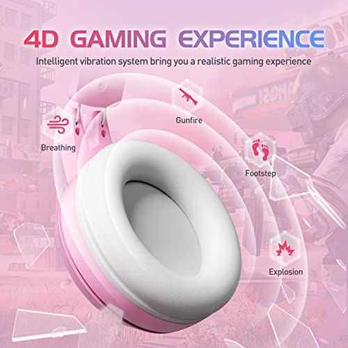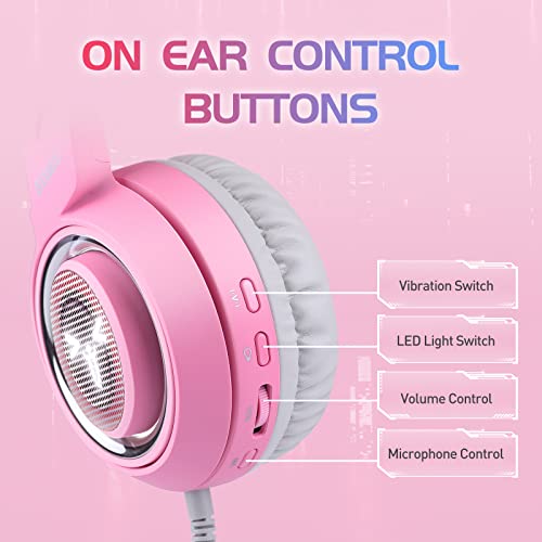 SOMiC G951rosa Rose Kat Gaming Headset Kopfhörer mit Virtuell 7.1 Klingen und LED Licht, Mikrofon für Computer, PS4…